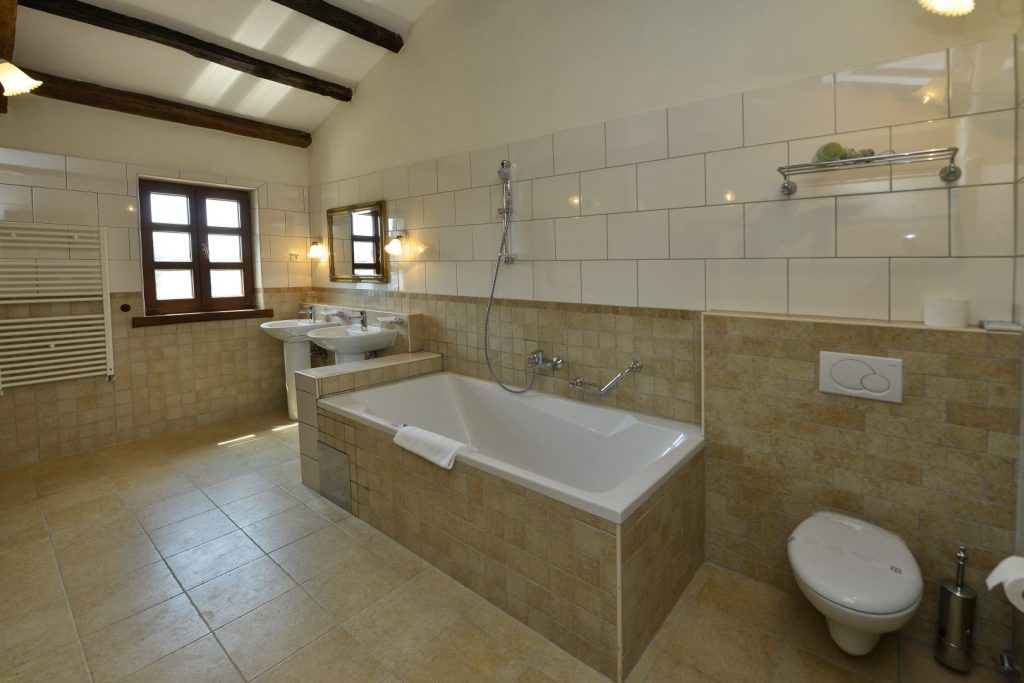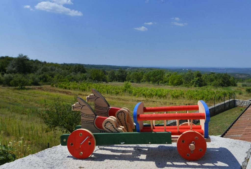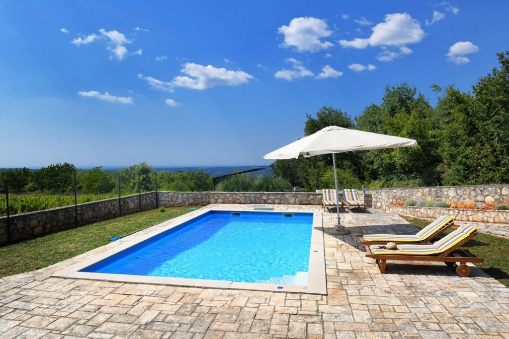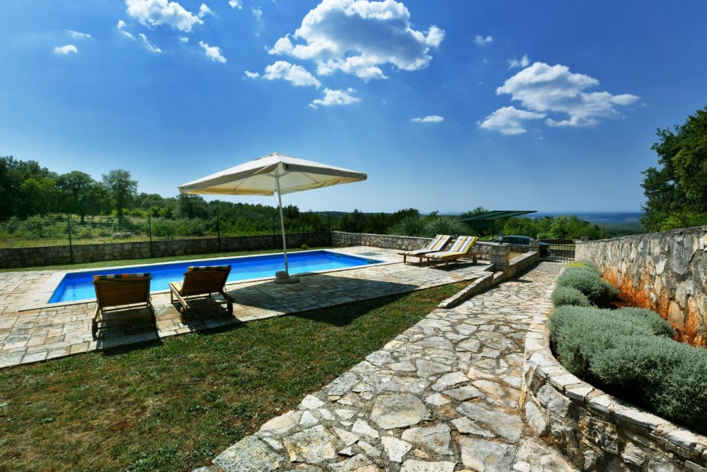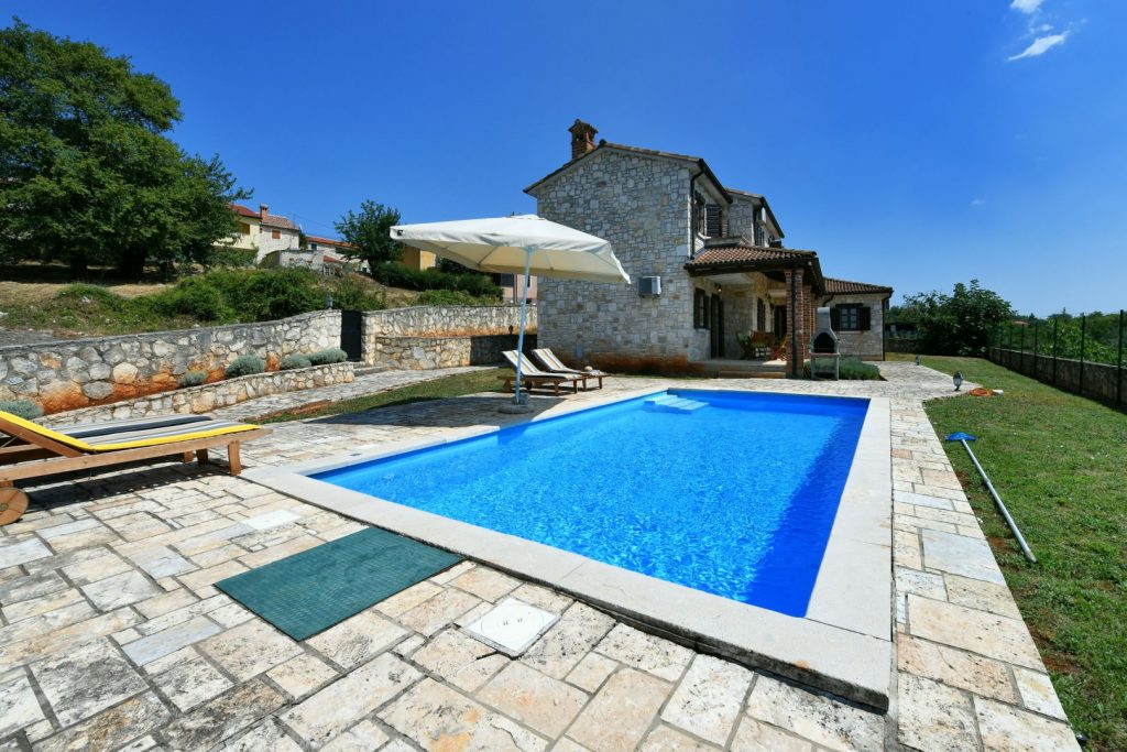 Daleko od užurbanosti civilizacije, a ipak okruženi svim prednosima modernog načina života naši gosti mogu uživati na svježem i čistom istarskom zraku okruženi autohtonim mediteranskim biljem posađenim u privatnom vrtu koji okružuje samu vilu ili se kupati u bazenu pravokutnog oblika i odmarati se na sunčalištu opremljenom modernim ležaljkama s jastucima i velikim pravokutnim (3mx3m) suncobranom. Dvorište je ograđeno kamenom ogradom koja uz biljke osigurava mir i privatnost vile. Na dvorištu se nalaze dva parkirna mjesta natkrivena mrežom za zasjenjivanje i odvojena ogradom od ostatka dvorišta.