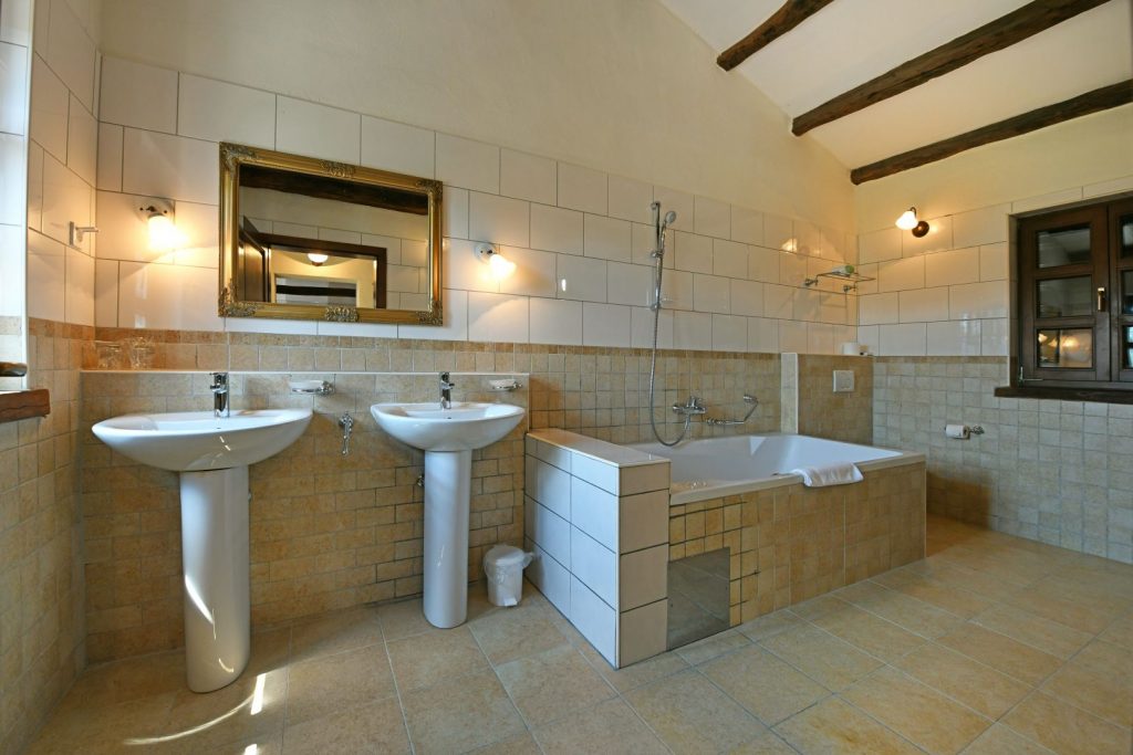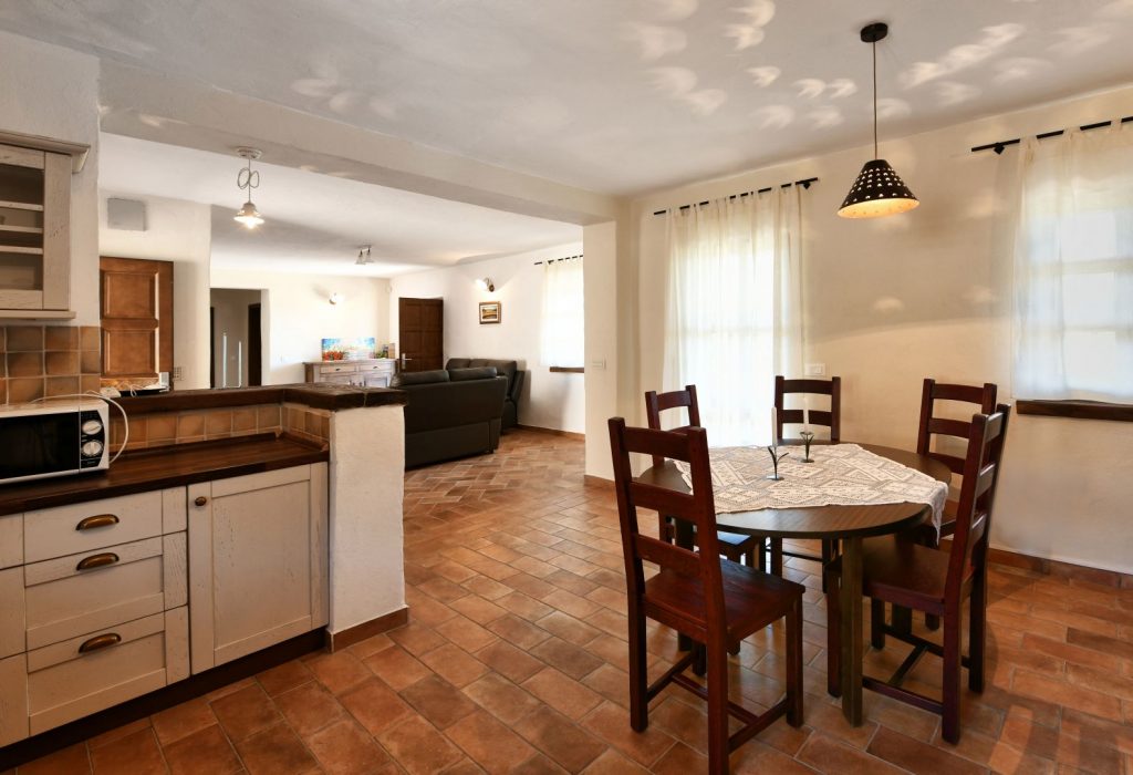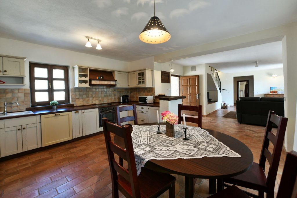 Vila se sastoji od prizemlja i kata. Prizemlje se sastoji od ulaznog pretprostora, velikog otvorenog jedinstvenog prostora potpuno opremljene kuhinje i blagovaone, sa dovoljno mjesta za blagovanje do 6 osoba te dnevinim boravkom sa sjedećom garniturom, tepihom i stolićem te multimedijalnim sadržajima. Iz blagovaone i dnevne sobe izlazi se na natkrivenu terasu opremljenu vrtnim namještajem za blagovanje i roštiljem. U izdvojenom dijelu prizemlja je zaseban wc sa mašinom za pranje veša te prostrana spavaća sobe sa vlastitom kupaonicom opremljenom kadom i tuš kadom. Iz spavaće sobe se izlazi na natkrivenu terasu, a sa prozora se pruža nezaboravan pogled na livadu ispred vile. Unutarnjim stubištem pristupa se na prvi kat na kojem se nalazi velika i udobna spavaća soba sa otvorenim kaminom i balkonom sa kojeg se za vedrih dana može vidjeti i Jadransko more, kao i garderoba te prostrana kupaonica sa kadom, tuš kadom, dva umivaonika, wc-om i bideom.