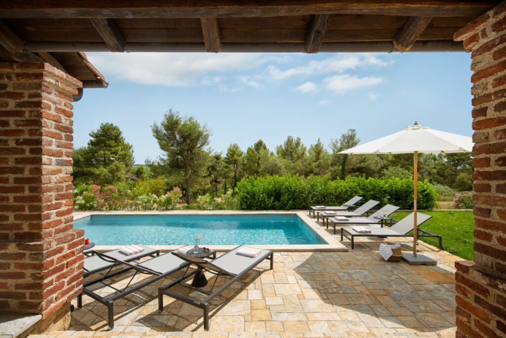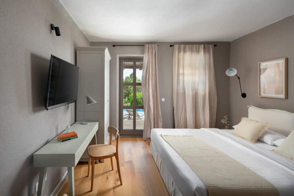 Prizemlje | Bračni krevet | Terasa | U sobi | Na dvorište, bazen, naselje |