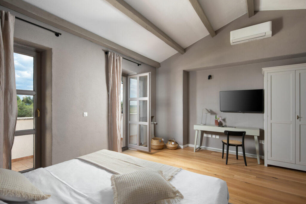 I. kat | Bračni krevet | Balkon | U sobi | Na dvorište, bazen, naselje |