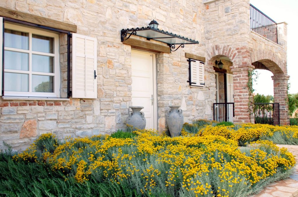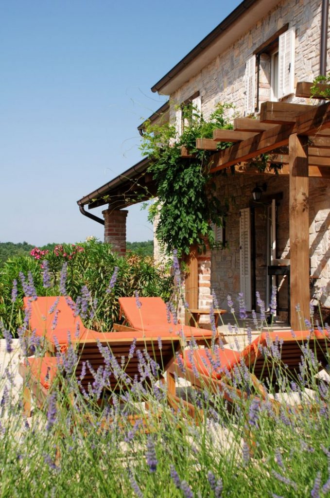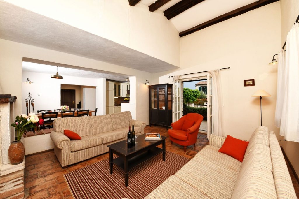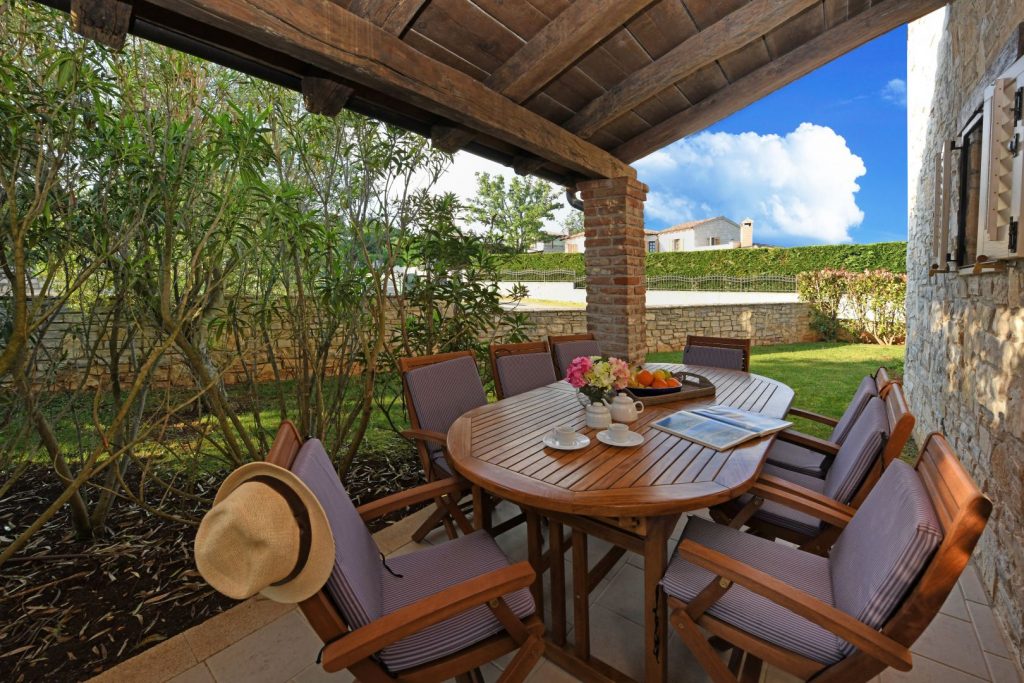 Vila je opremljena dizajnerskim rustik namještajem. Kuhinja je potpuno opremljena i povezana s blagovaonicom uređenom za 8 osoba koja ima izlaz na natkrivenu terasu u stražnjem dvorištu. U dnevnom boravku je izlaz na drugu terasu opremljenu vrtnim namještajem.