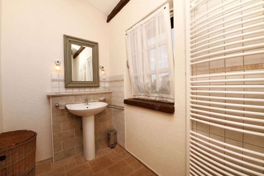 Spavaće sobe namještene su metalnim bračnim krevetima i bijelim ormarima s toaletnim stolićima i stolicom. Spavaća soba u prizemlju ima izlaz na terasu i dvorište, a pogled se pruža na dvorište i naselje. Ova soba ima vlastitu kupaonicu s kadom. Dvije spavaće sobe na katu dijele zajednički balkon i kupaonicu s kadom koja se nalazi pokraj soba. Pogled s balkona pruža se na naselje i hidromasažnu kadu. Treća spavaća soba ima privatni balkon koji gleda na naselje i dvorište. Ova soba ima vlastitu kupaonicu s tuš kadom.