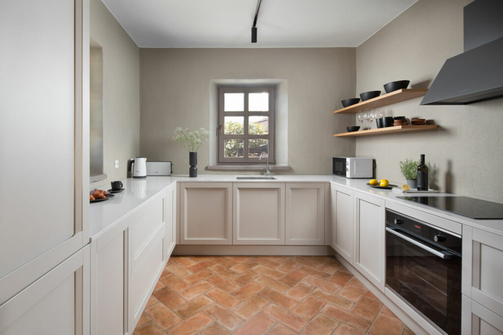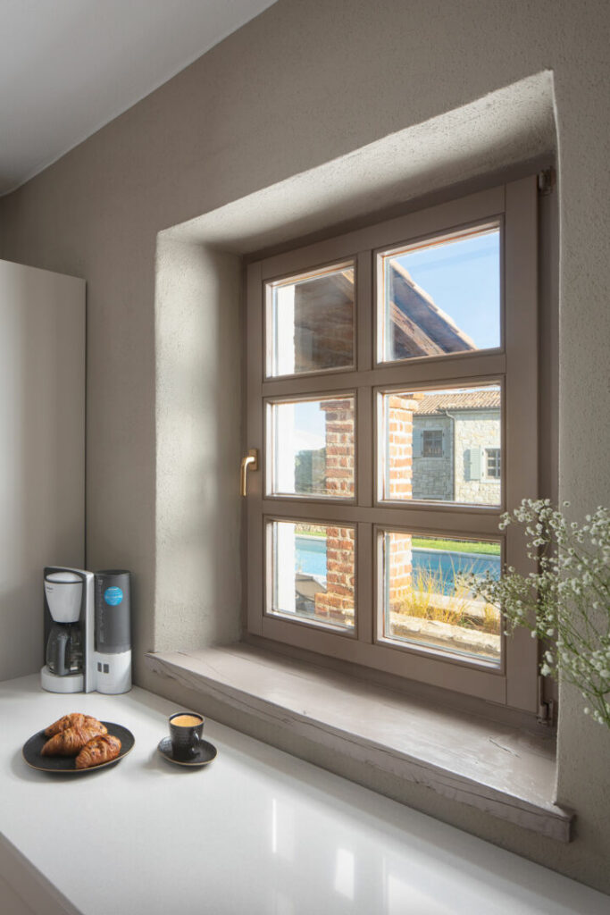 Vila se sastoji od prizemlja i kata. Spavaće sobe su opremljene kao kombinacija kreveta samaca i bračnih kreveta. Kuhinja je potpuno opremljena i odvojena od prostora za blagovanje i dnevnog boravka sa zidanim kaminom koja ima izlaz na natkrivenu terasu.