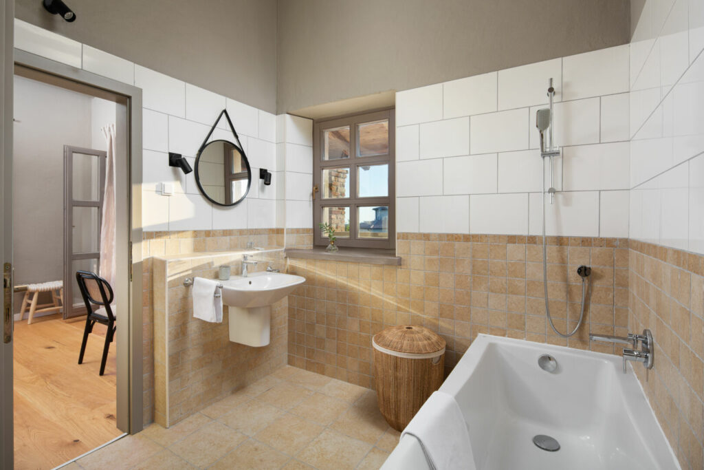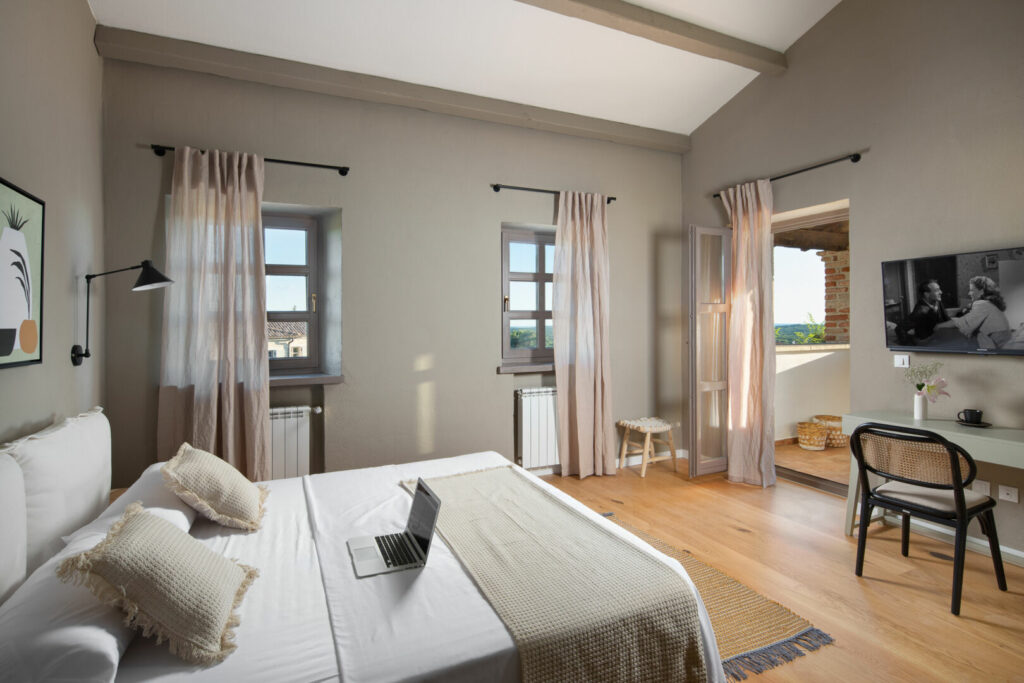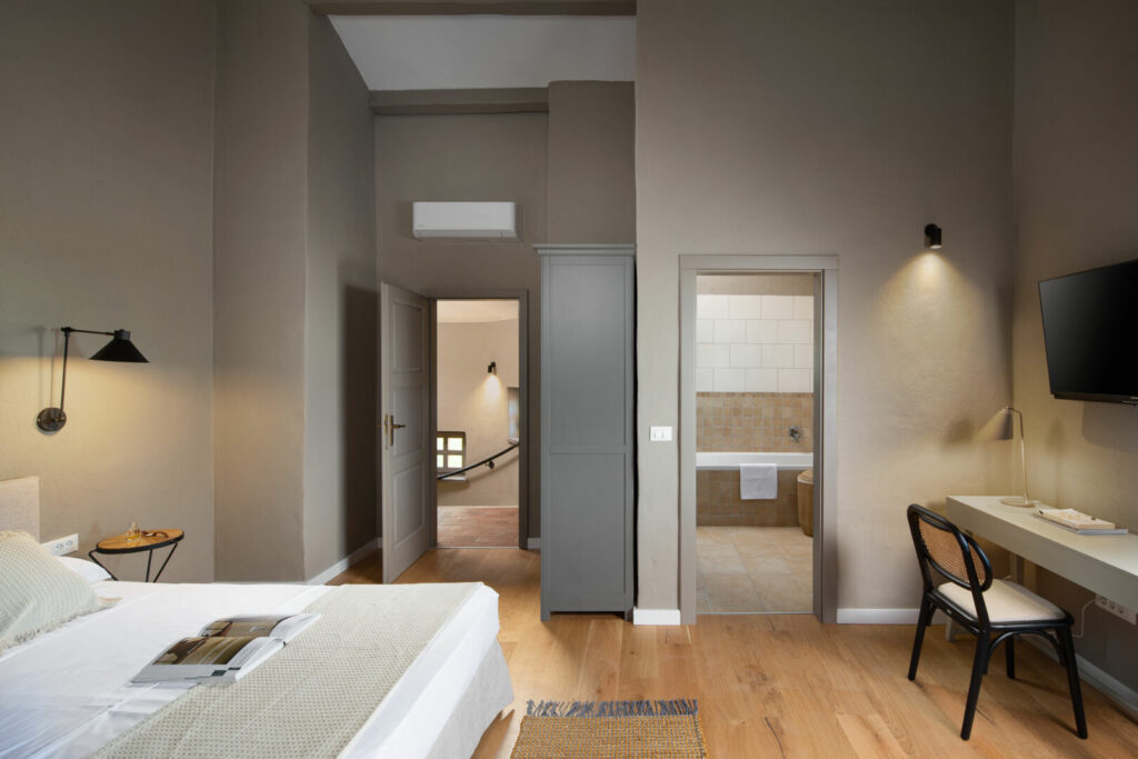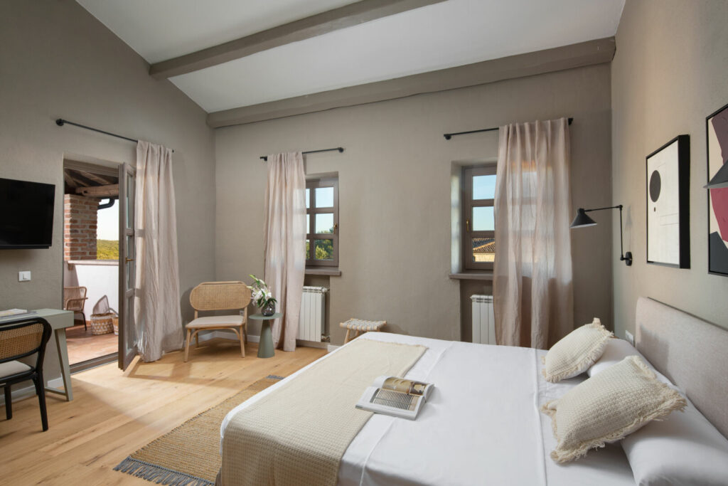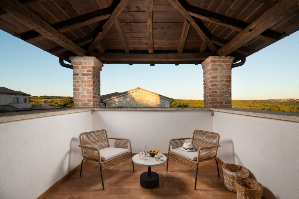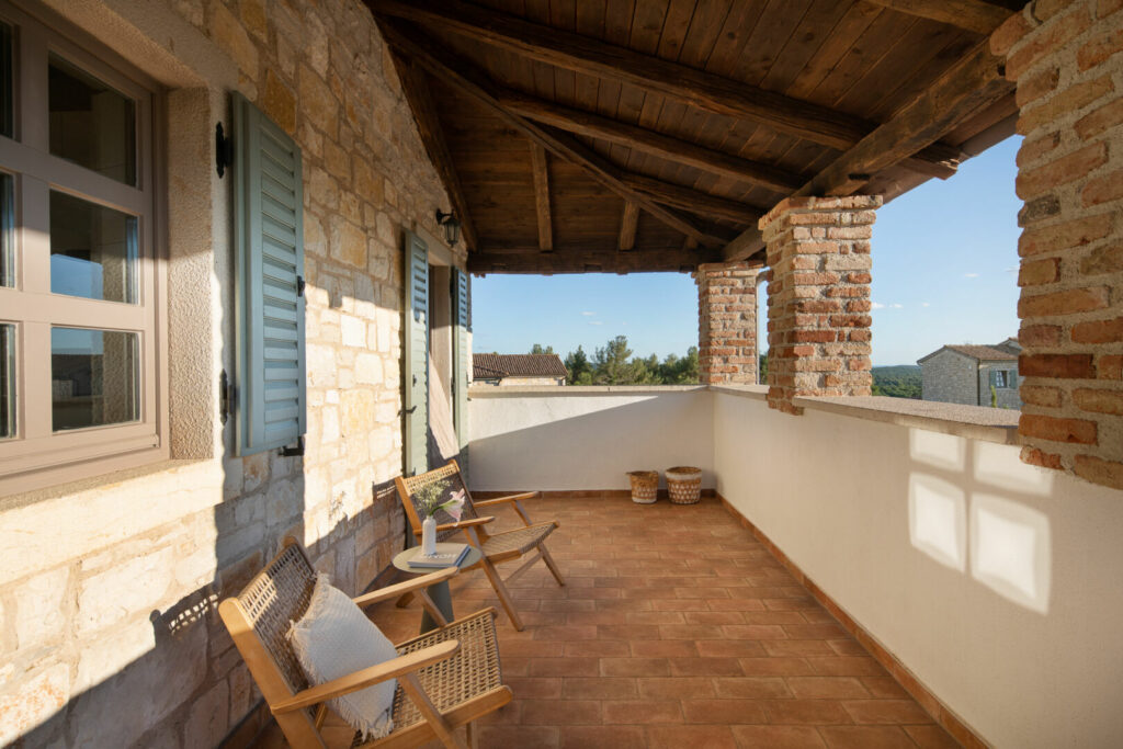 U prizemlju se nalaze dvije spavaće sobe sa vlastitim kupaonicama. Jedna od njih ima poseban ulaz sa terase, te kupaonicu sa kadom, dok druga ima kupaonicu sa tuš kadom i pogled na vrt. Spiralne unutarnje stepenice vode na prvi kat gdje se nalaze dvije spavaće sobe, koje imaju zasebne kupaonice, te svaka od njih ima natkrivenu terasu sa kojih se pruža prekrasan pogled.